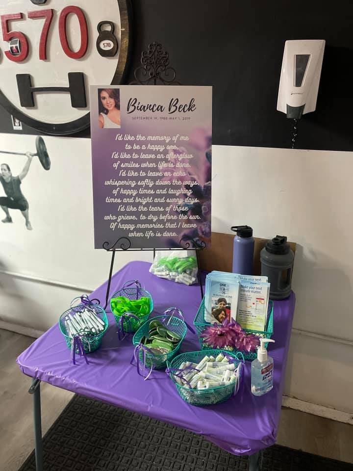 Two years after Bianca passed away, The Bianca Beck Memorial Foundation had its first fundraising event. Many friends and family took part in Bianca’s Boot Camp, which was held at CrossFit570 in Peckville, PA. Many participated in the ‘Boot Camp’ workout, and many just came to support the foundation by purchasing raffle tickets, cookies, water, and t-shirts.